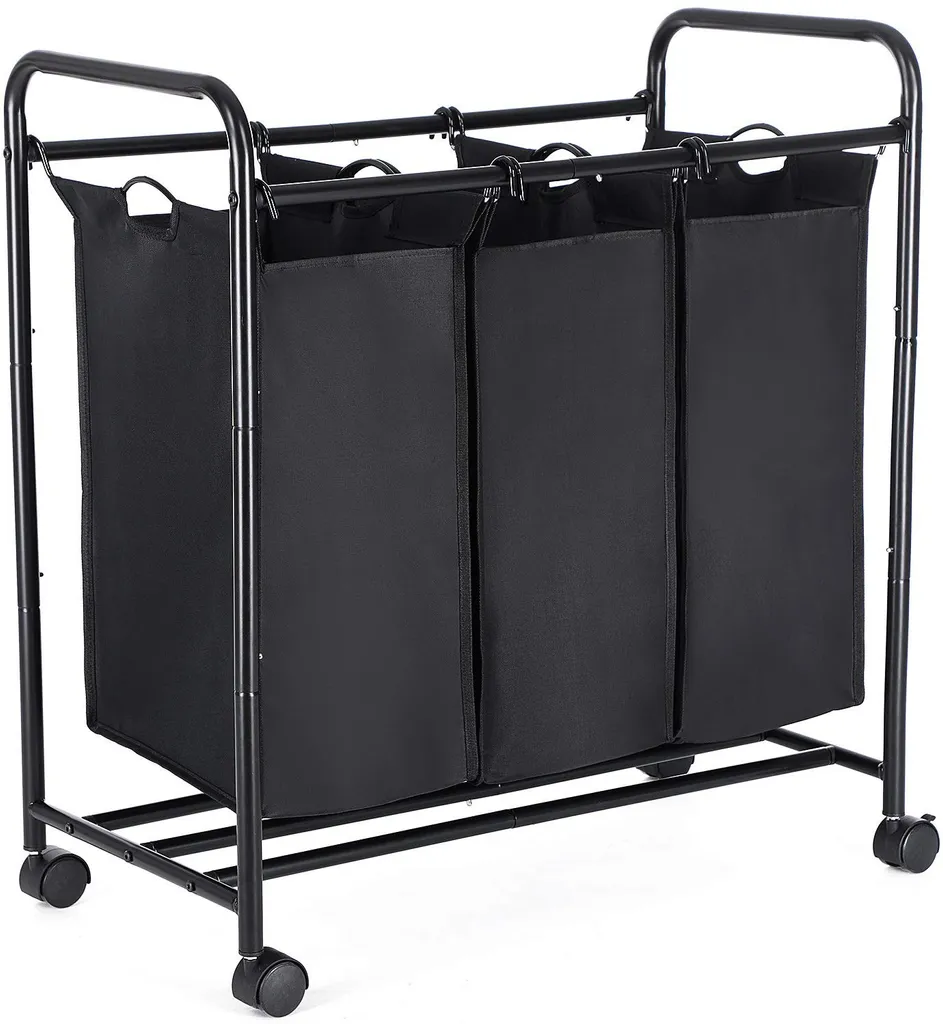 SONGMICS Wäschekorb Mit 3 Abnehmbaren Stofftaschen, 3 X 44 Liter, Wäschesortierer Wäschesammler, Schwarz LSF003B