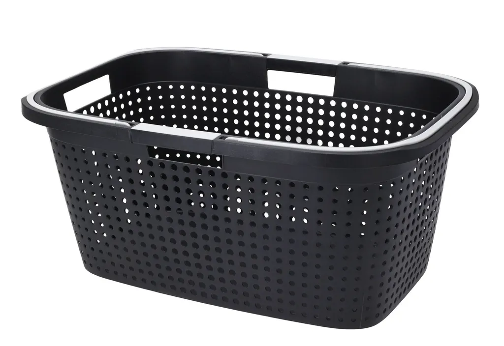 Spetebo Wäschekorb Aus Kunststoff In Schwarz – 60 X 39 Cm – Tragekorb Mit Klappbaren Griffen – Einkaufskorb Aufbewahrungskorb Tragegriffe