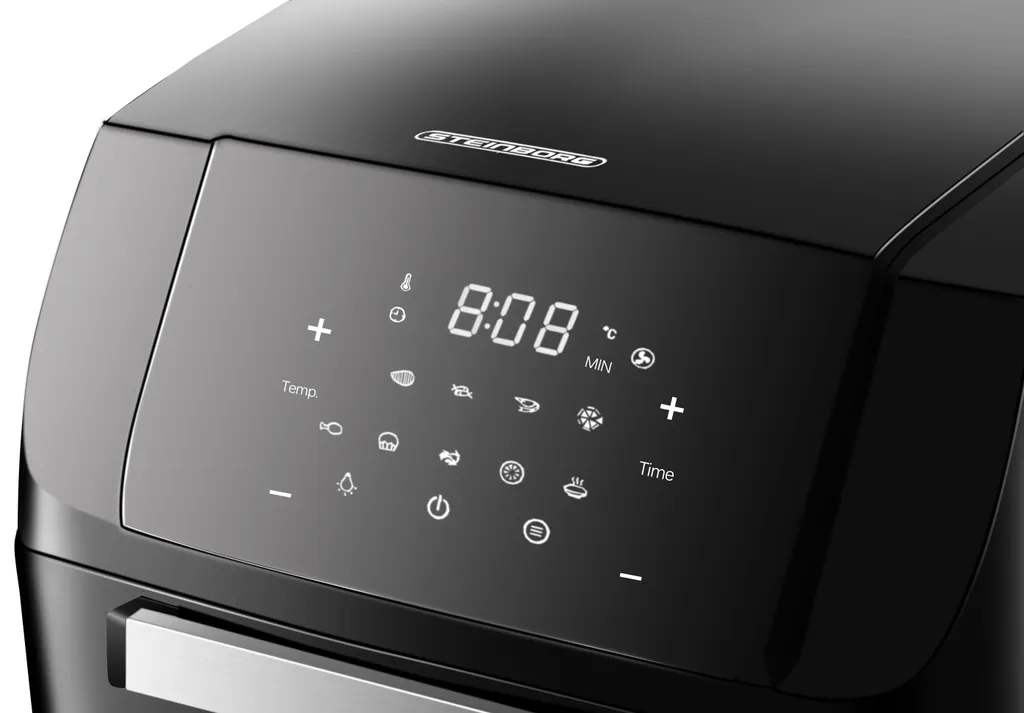 Steinborg 4-in1 Heißluftfritteuse | 12L | 1.500 W | Mit LED Touchscreen | 10 Automatische Programme | Inkl. Rezeptbuch Auf Deutsch | Frittieren, Backen, Grillen Oder Dörren | Aufwärmfunktion | Automatische Abschaltung |