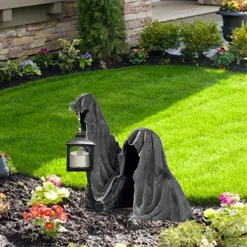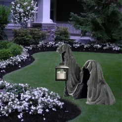 Stretoey Bodenschnitter Mit Laterne, Harz Geist Dekorative Laternen Skulptur, Halloween Hausgarten Nachtlicht Statue, Für Garten Partydekoration
