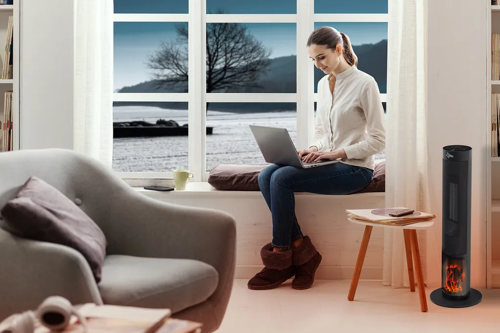 SUNTEC Heizlüfter Heat PTC 2000 Flame – Leise Heizturm Inkl. Fernbedienung Timer 2000 Watt | Elektro Heiztower Mit Thermostat 2 Heizstufen | Elektroheizung Kaminfeueroptik | Elektrische Wärme 15-35 °C