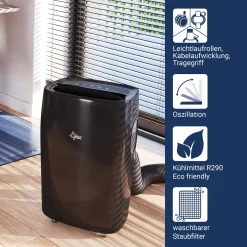 SUNTEC Mobiles Lokales Klimagerät Progress 9.000 R290 | Für Räume Bis 80m3 (34 M2) | Inkl. Abluftschlauch | Kühler Und Entfeuchter Mit ökologischem Kühlmittel R290 | 9.000 BTU/h, EEK A