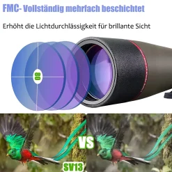 Svbony SV13 Spektive, 20-60×80 Monokulare Ferngläser Mit Handy Adapter, FMC 80mm Okular, Silberbeschichtetes Prisma, IPX7 Wasserdichtes, Eingebauter Sonnenschirm, Für Zielschießen, Vogelbeobachtung, Wildtierlandschaft