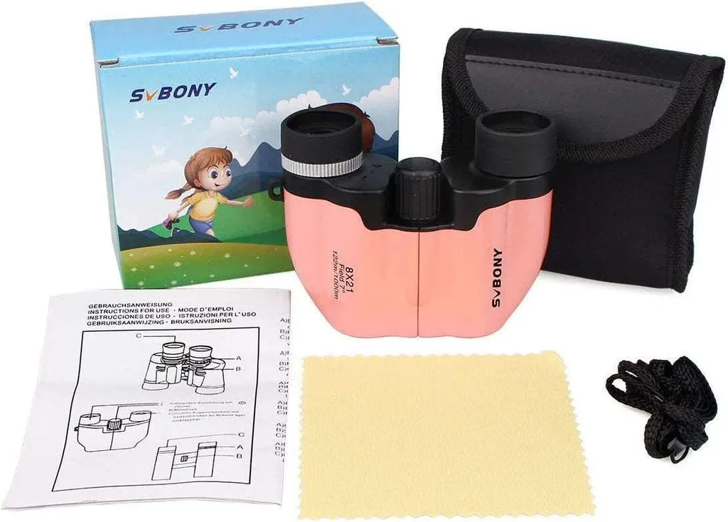 Svbony SV26 Fernglas Für Kinder, Kinderfernglas Ab 3-12 Jahre, 8×21 Fernglas Kinder Vogelbeobachtung Camping Wandern Outdoor-Aktivitäten (Rosa)