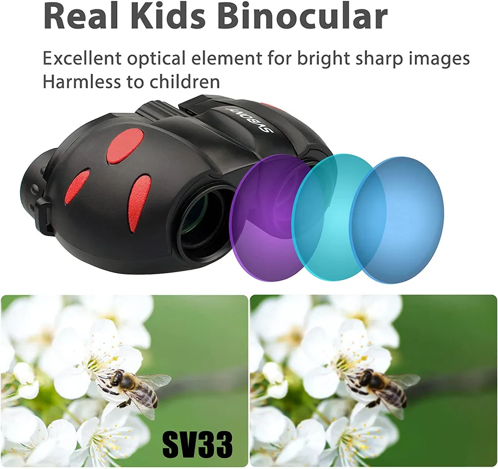 Svbony SV33 Kinderfernglas 8×21 Spielzeug Für Kinder Kompaktfernglas Für Vogelbeobachtung Outdoor-Aktivitäten (Schwarz Und Rot)