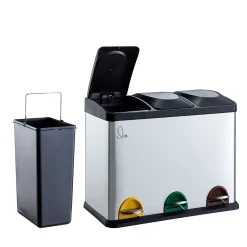 SVITA TC3X15 Mülleimer Papierkorb Edelstahl Treteimer Abfalleimer Recycling 45L