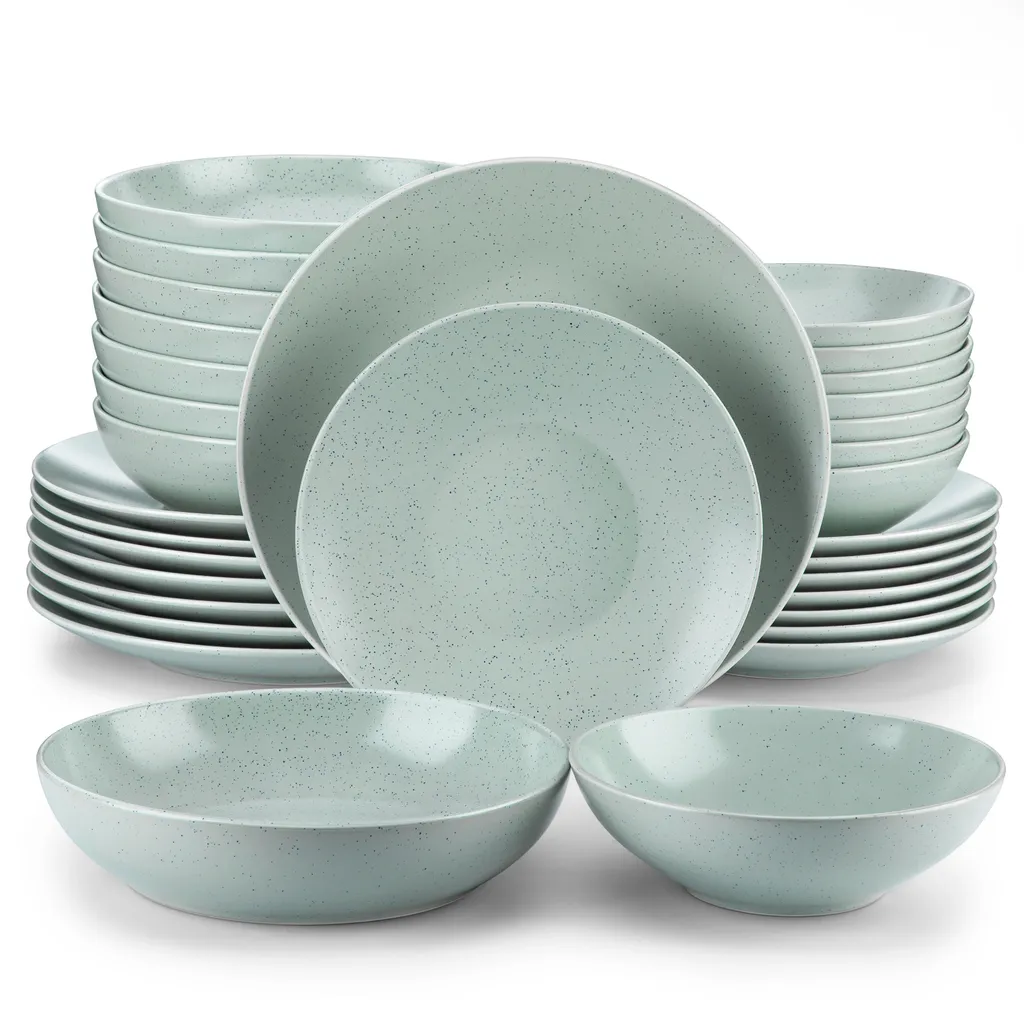 Tafelservice Steingut, Vancasso SABINE 32-teiliges Geschirrset, Modernes Kombiservice Für 8 Personen, Sesam Design