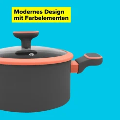 Tasty Antihaft-Kochtopf 20 Cm, Kleiner Bratentopf Mit Glasdeckel Und Softtouch-Griffen