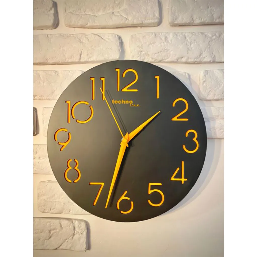 Techno Line Elegante 29cm Quarz Wanduhr WT7230 Von Technoline Analog Schwarz/ Orange
