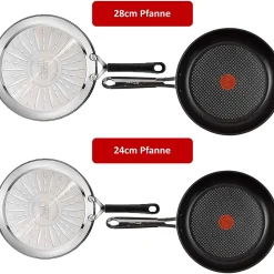 Tefal J90929 Jamie Oliver Pfannenset Induktion 4 TLG, Set Angebot, Pfanne 28 Cm + Pfanne 24 Cm, Edelstahl