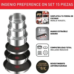 Tefal Topfset INGENIO Emotion Kochgeschirr, 22 Tlg, Topfset & Pfannenset, Wok, Pfanne , Edelstahl 18/10, Töpfe Und Pfannen Set, Kochtopf Kochtöpfe Für Induktionsherd Geeignet, Mit Deckel Abnehmbarer Griff