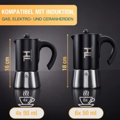 Thiru Espressokocher Induktion L Premium Mokkakanne Aus Edelstahl Inkl. Toolset (Silber, 4 Tassen (200ml))