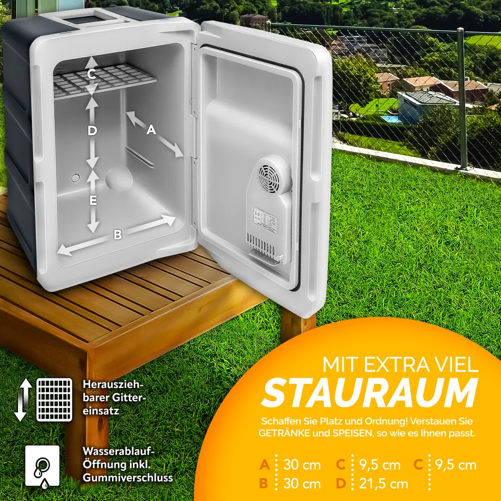 Tillvex Kühlbox Elektrisch 40L Grau Mit Rollen | Mini-Kühlschrank 230 V Und 12 V Für KFZ Auto Camping | Kühlt & Wärmt | ECO-Modus