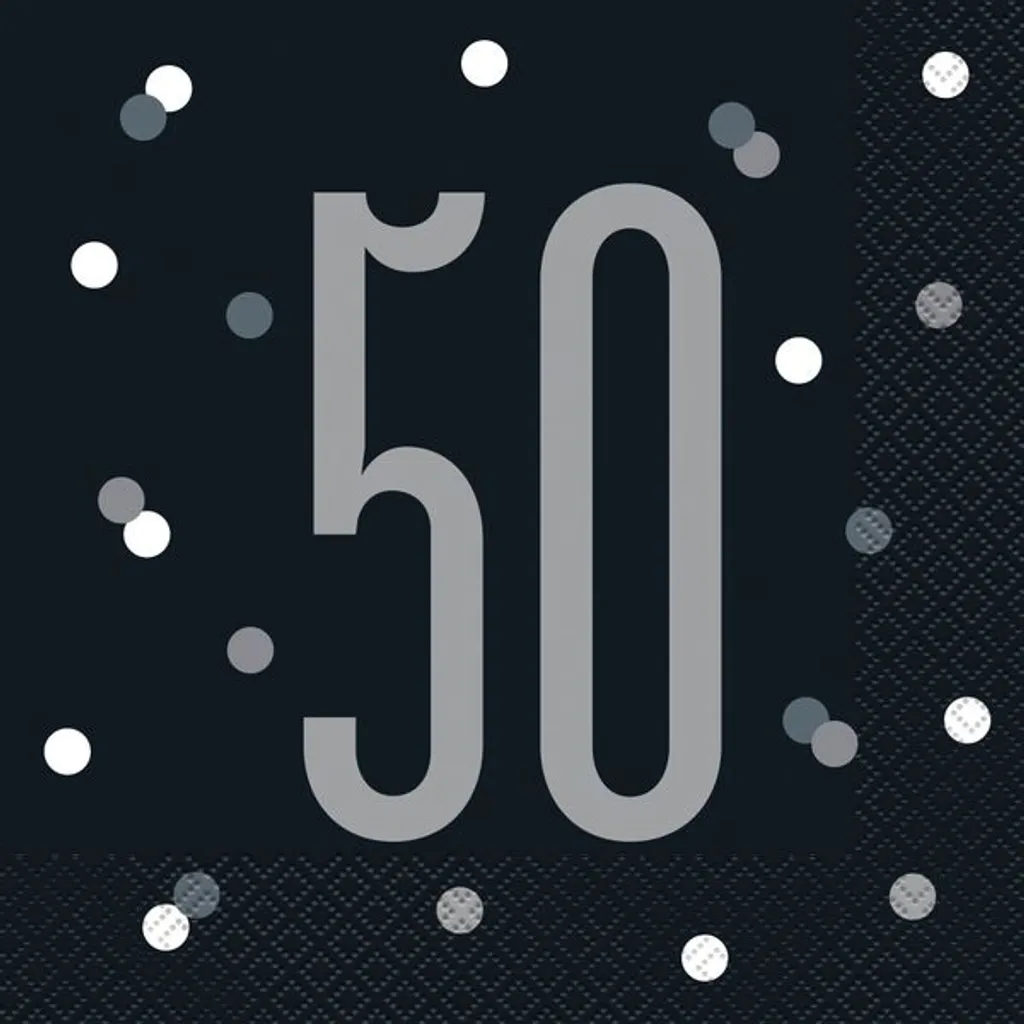 Unique 16 Servietten Schwarz & Silber Zahl 50