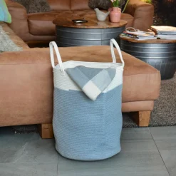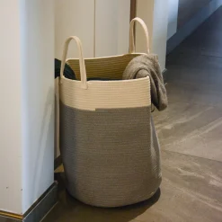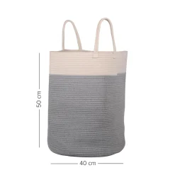 UNUS HOME Aufbewahrungskorb Wäschekorb Faltbar Tragegriffe Baumwolle 40×50 Cm Grau/weiß