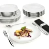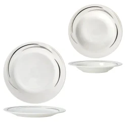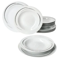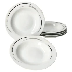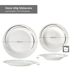 Van-Well 12tlg Tafel-Service Home Suppenteller Speiseteller Streifen Porzellan-Geschirr