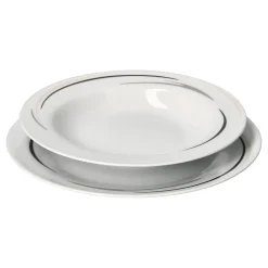 Van-Well 12tlg Tafel-Service Home Suppenteller Speiseteller Streifen Porzellan-Geschirr