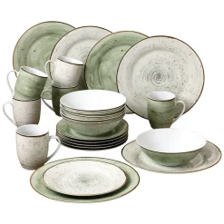 Van-Well 24tlg. Kombiservice Pur 6Pers Kaffeebecher Müslischale Kuchenteller + Speiseteller Flach Porzellan