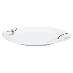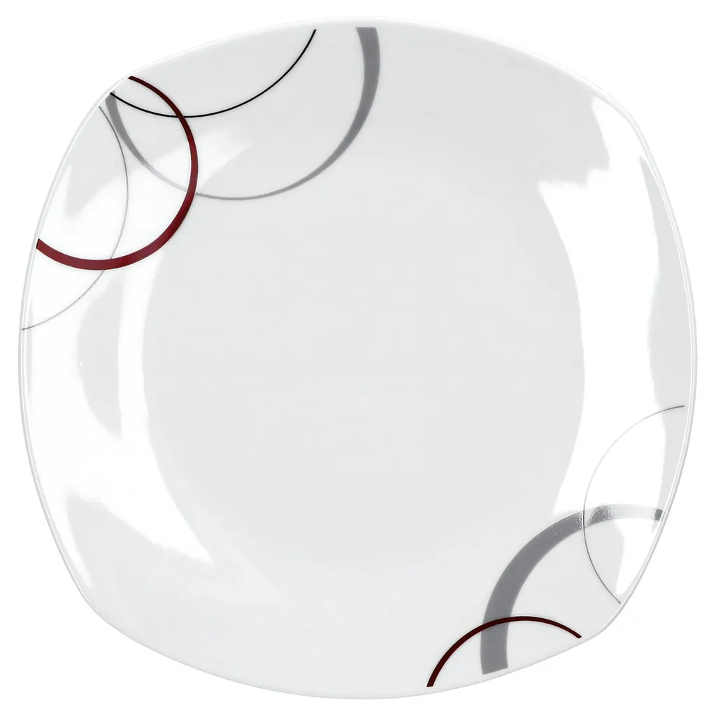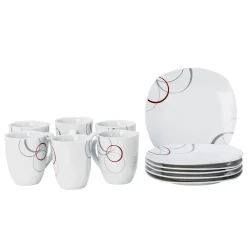 Van-Well Frühstücksset Palazzo 12tlg. – 6 Teller á 19cm Und 6 Becher á 33cl Aus Weißem Porzellan MitNachbildung-Kreisen In Grau Und Dunkelrot – Für 6 Personen