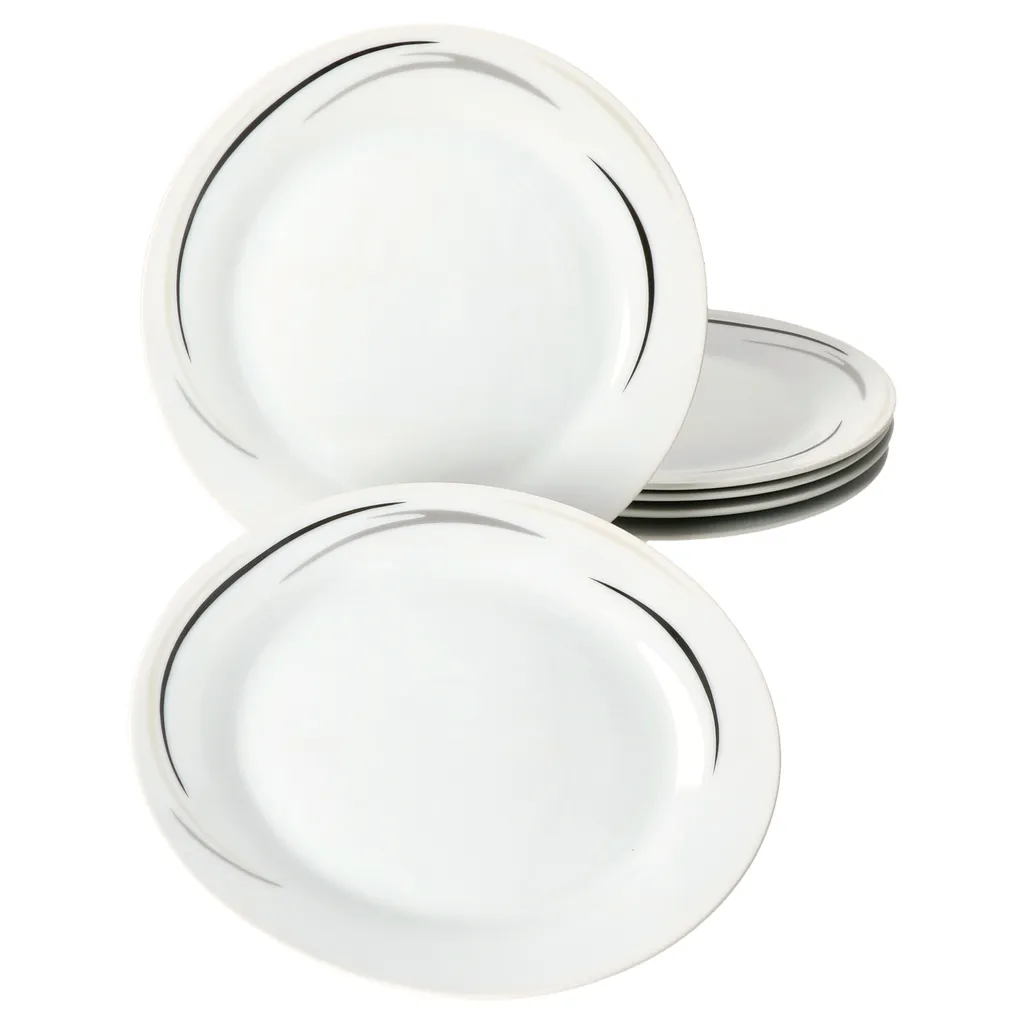 Van-Well Van Well 18tlg. Kaffee-Service Home Für 6 Personen I 6x Tasse 180ml, 6x Untertasse + 6x Kuchenteller I Porzellan-Geschirr Mit Streifen In Grau, Schwarz & Creme I Kaffeepott, Dessert-Teller