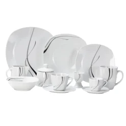 Van-Well Van Well Kombiservice Silver Night 62-tlg 6 Personen, Tafel + Kaffee + Zubehör, Linien-Dekor