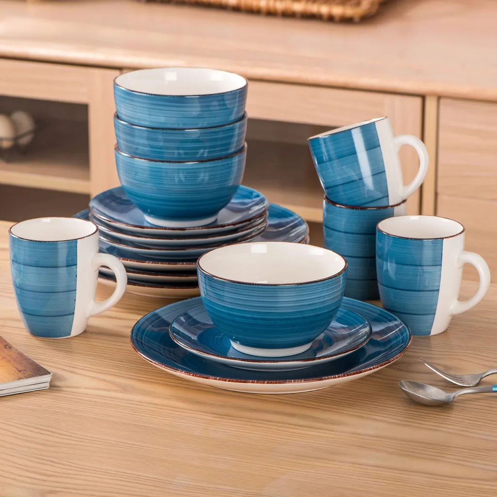 Vancasso Bella Steinzeug Kombiservice, 16 Teilig Geschirrset Für 4 Personen, Mit Je 4 Dessertteller, Speiseteller, Müslischalen, Kaffeebecher, Blau