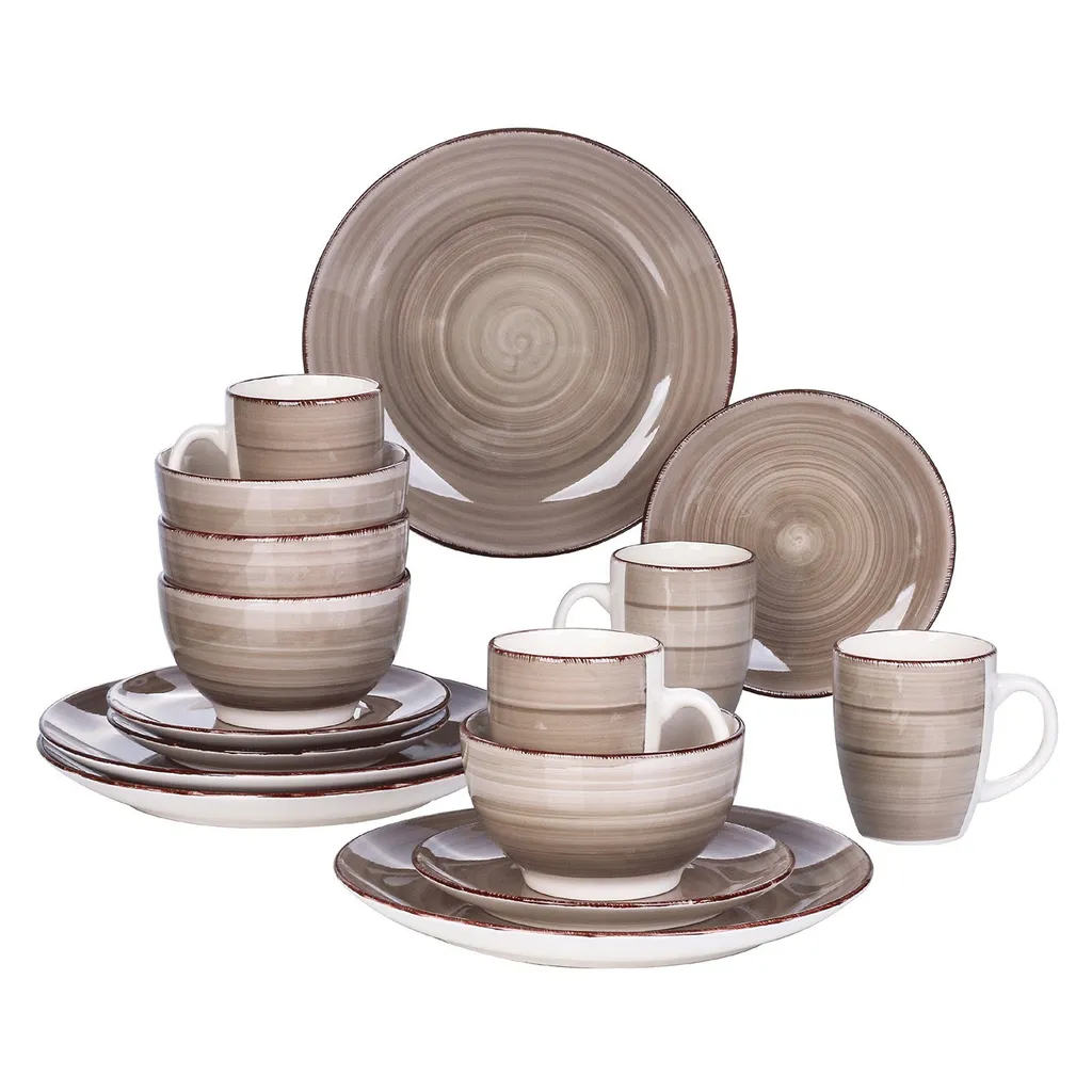 Vancasso Bella Steinzeug Kombiservice, 16 Teilig Geschirrset Für 4 Personen, Mit Je 4 Dessertteller, Speiseteller, Müslischalen, Kaffeebecher, Schokolade
