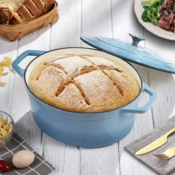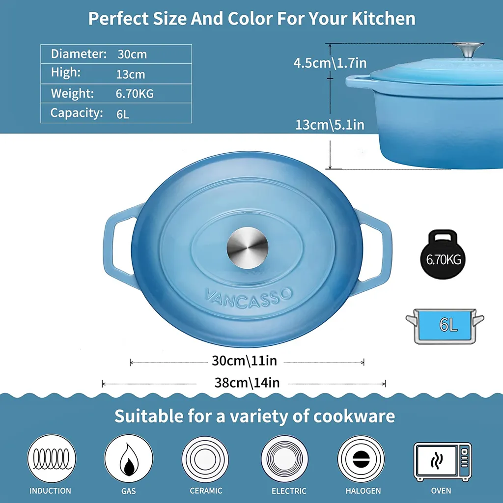 Vancasso Gusseisen Topf, Bräter Mit Deckel, Bratpfanne 6L Ø 30cm Emaillie Schmortopf, 13cm Niedrige Höhe Kasserolle Für Alle Herdarten Und Induktion