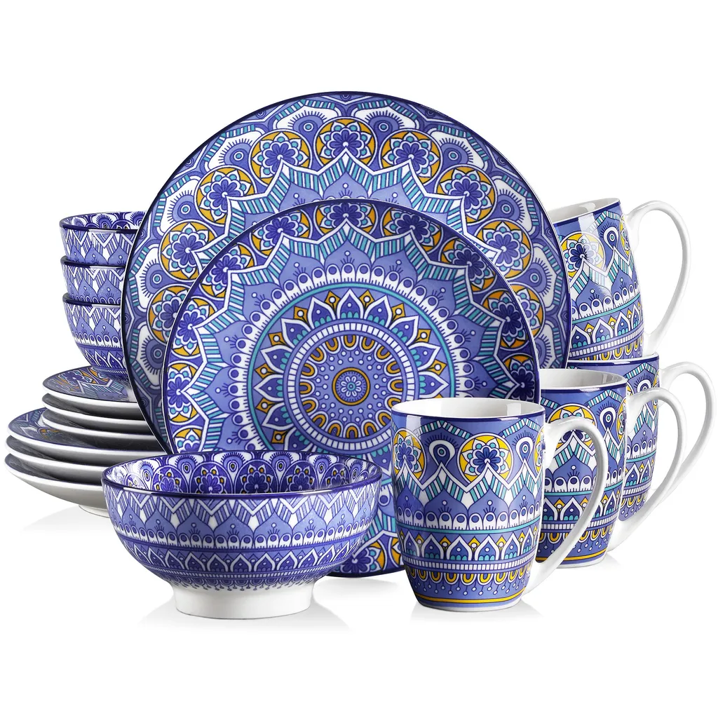 Vancasso Tafelservice Porzellan, Mandala 16 Teiliges Essgeschirr Kombiservice, Handbemaltes Geschirrset Für 4 Personen, Böhmischer Stil