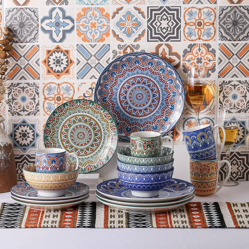 Vancasso Tafelservice Porzellan, Mandala 16 Teiliges Essgeschirr Kombiservice, Handbemaltes Geschirrset Für 4 Personen, Böhmischer Stil
