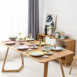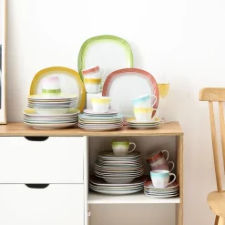 VEWEET Tafelservice ‚SPARK‘ Aus Porzellan, 60-tlg Kombiservice, Kaffeetassen, Untertasse, Dessertteller, Speiseteller Und Suppenteller, Komplettservice Für 12 Personen