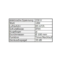 VONLIS Badlüfter Badventilator Deckenlüfter Ventilator Wohnraumlüfter Kugellager Ø 100 Mm Weiß Timer/Nachlauf