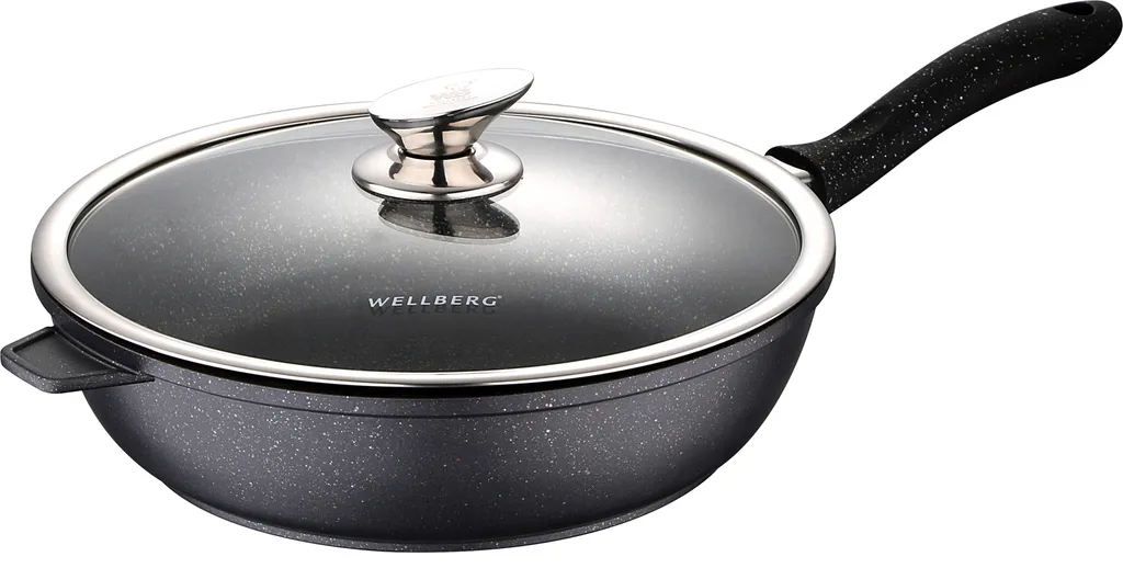 Wellberg Bratpfanne 28cm Mit Deckel Induktion Marmor Antikratz Pfanne ALUGUSS Grillpfanne