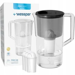 Wessper AquaClassic Basic Wasserfilter Krug 2.5L + 4x Kartusche / Wasserfilter – Farbe Schwarz