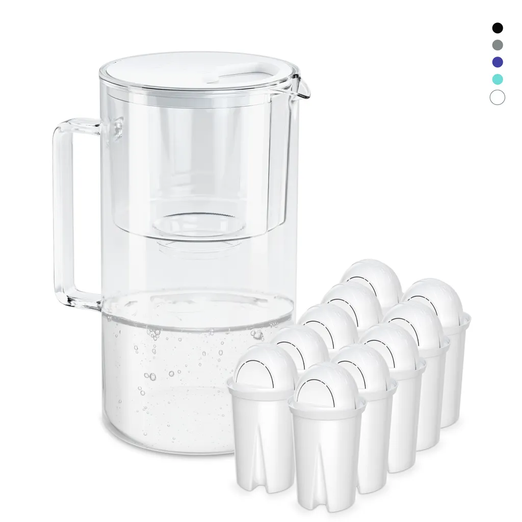 Wessper Glas Wasserfilter 2,5 L Mit 10 Filterkartuschen, Kompatibel Mit Brita Classic-Weiß