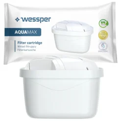 Wessper Wasserfilterkanne 2.5 L Kompatibel Mit Brita Maxtra, Wasser Filtersystem Zur Reduzierung Von Kalk, Chlor | Inklusive 1 Wasserfilterkanne + Wasserfilter -Kartusche Weiß/Weiß