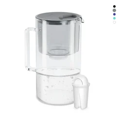 Wessper Wasserfilterkanne Aus Glas 2.5 L Kompatibel Mit Brita Classic-wasserfilterkartuschen | Inklusive 1 Wasserfilter-kartusche, Reduziert Kalk Und Chlor, Grau