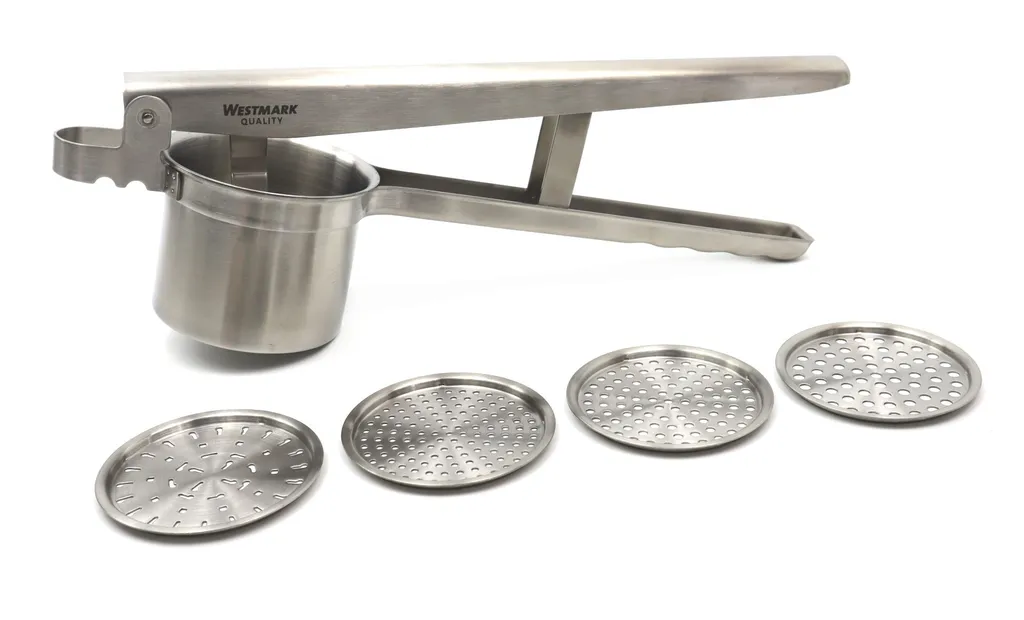 Westmark 611-72260 Spätzlepresse Edelstahl Mit 4 Einsätzen, Silber