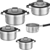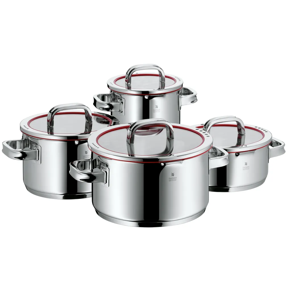 WMF Function 4 Topfest Induktion 4-teilig, Cromargan Edelstahl Poliert, Glasdeckel Mit 4 Abgießfunktionen, Induktionstöpfe, Innenskalierung