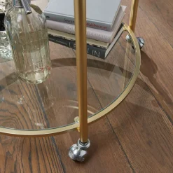 WOHNLING Design Servierwagen Gold Ø 57 Cm Beistelltisch | Teewagen Metall Mit Rollen | Küchenwagen Mit Glasplatten | Barwagen Rund 75 Cm Hoch | Küchentrolley Modern | Rollwagen