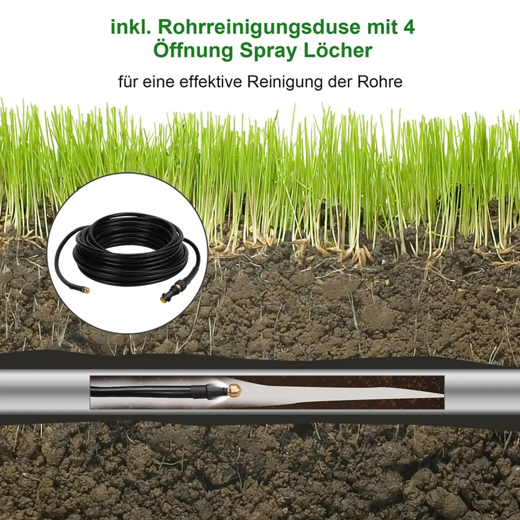 Wolketon 20m Rohrreinigungsschlauch Rohrreiniger Set Für Kärcher Kränzle K2 – K7 Hochdruckreiniger