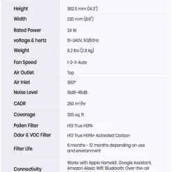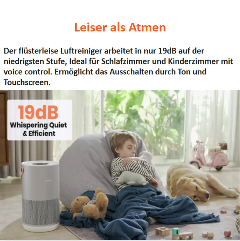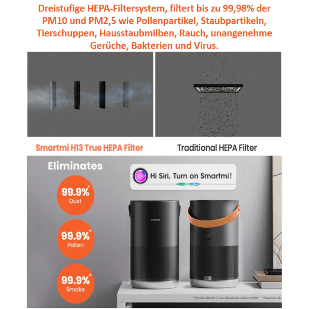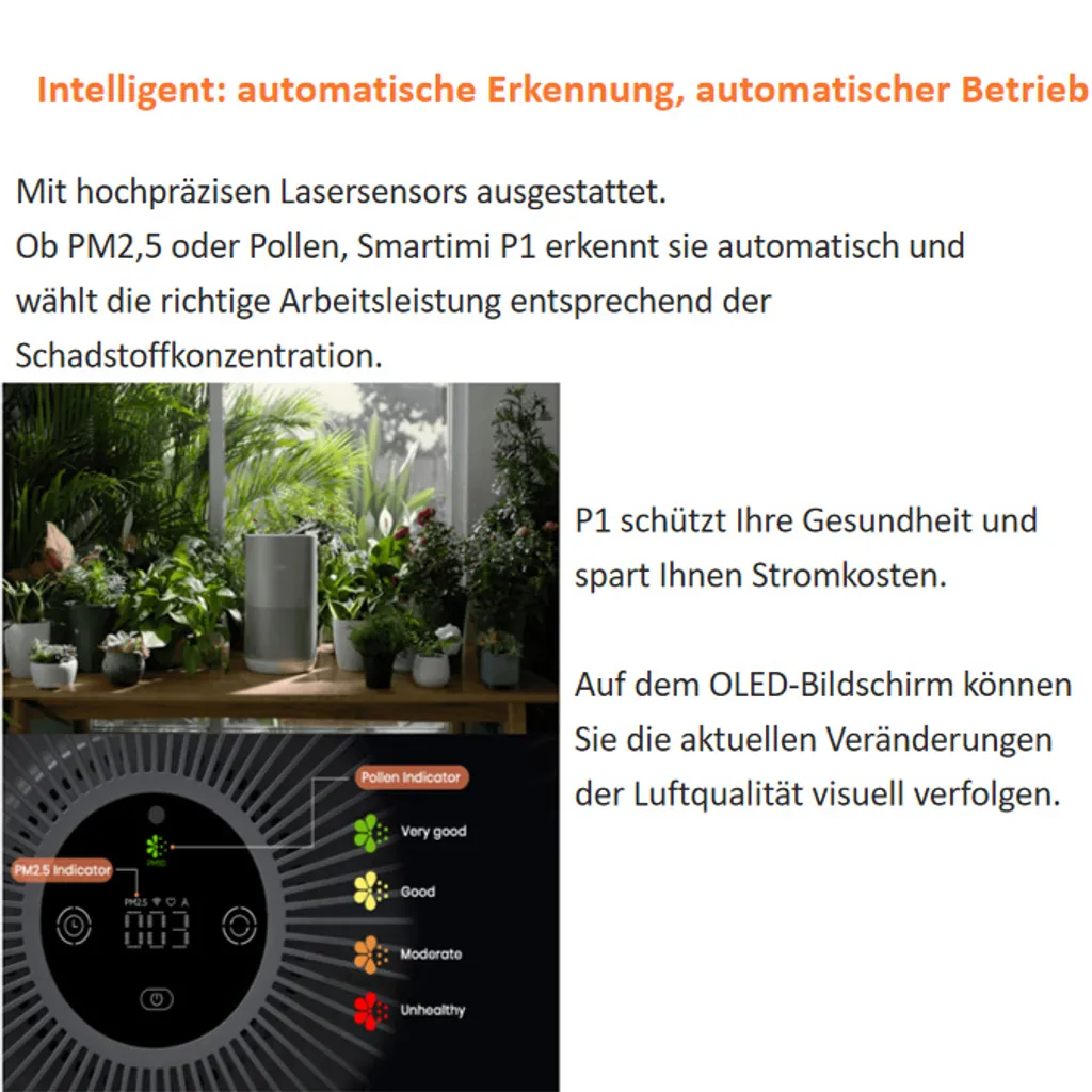 Xiaomi Tragbar Luftreiniger Für Allergiker Haustierenhalter Kühche U. Neue Haus Leise 19dB Smartmi P1 Alexa Google Usw. Steuerung HEPA-Filter Fängt 99,9% Partikel Viren Sauerstoff Versorgung Reiniger Tragegriff Partikellasersensor