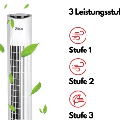 Zilan Turmventilator | 3 Stufen | 2 Modi | 7,5h Timer | Fernbedienung | Oszillierend |